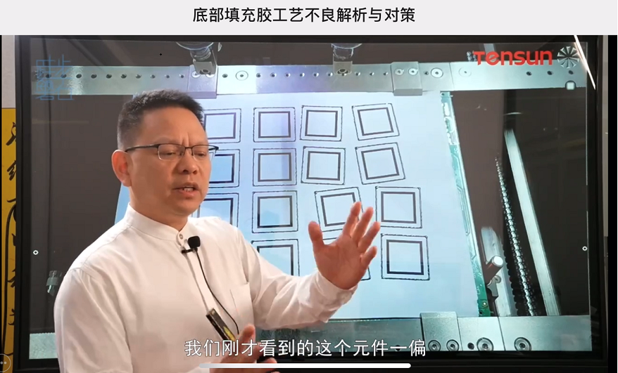 近日,中國PCBA最具影響力的實戰(zhàn)專家之一薛廣輝老師主講的《底部填充膠工藝不良解析與對策》課程在網(wǎng)絡平臺傳播分享,引起了專業(yè)人士及相關從業(yè)者的廣泛關注。薛老師在分享底部填充的技術要點時,還引入實戰(zhàn)應用案例,其中就重點推薦了Tensun騰盛的底部填充自動傾斜噴射點膠方案。